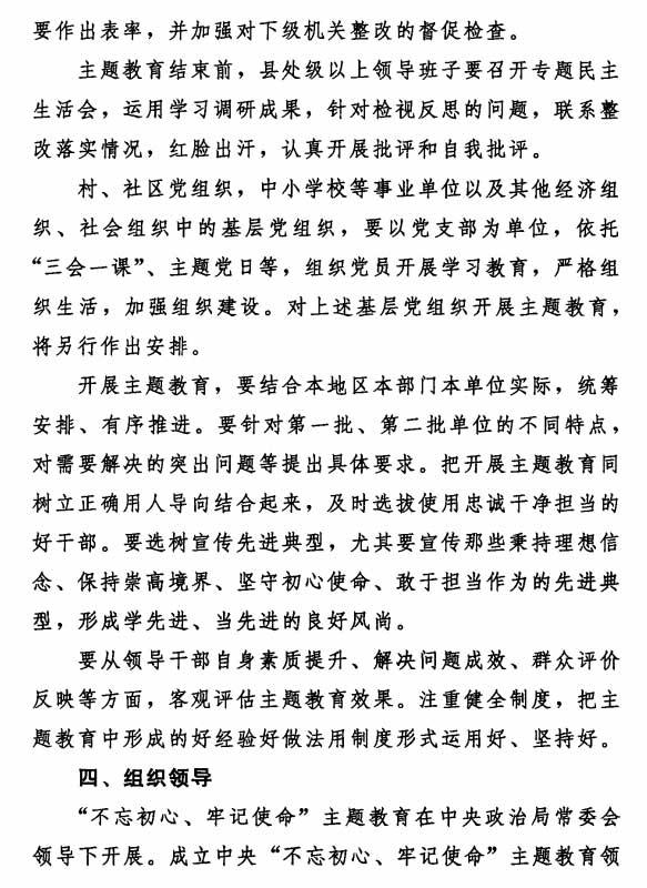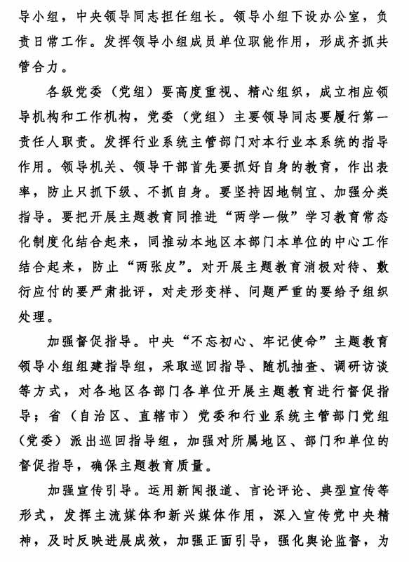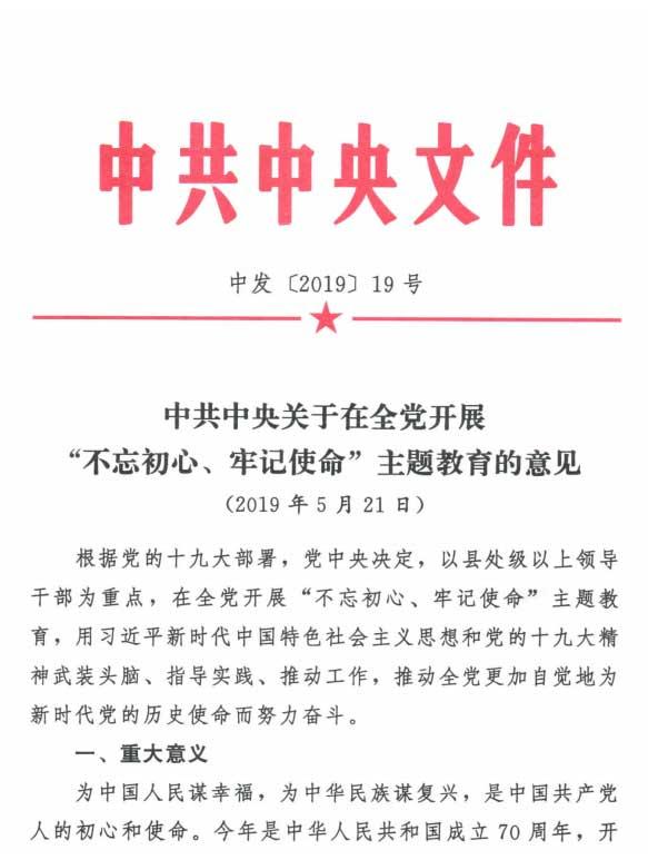 中共中央關(guān)于在全黨開(kāi)展“不忘初心、牢記使命”主題教育的意見(jiàn)