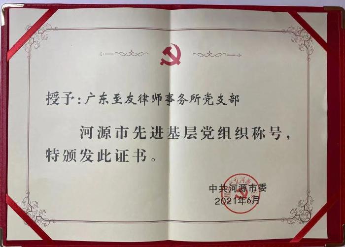 為慶祝中國(guó)共產(chǎn)黨成立100周年,激勵(lì)全市各級(jí)黨組織和廣大黨員不忘初心、牢記使命,真抓實(shí)干、改革創(chuàng)新。為全面建設(shè)社會(huì)主義現(xiàn)代化強(qiáng)國(guó)不懈奮斗。7月1日下午,河源市“兩優(yōu)一先”表彰大會(huì)在市會(huì)議中心隆重舉行,廣東至友律師事務(wù)所黨支部榮獲“河源市先進(jìn)基層黨組織”稱號(hào),在會(huì)上受到表彰。