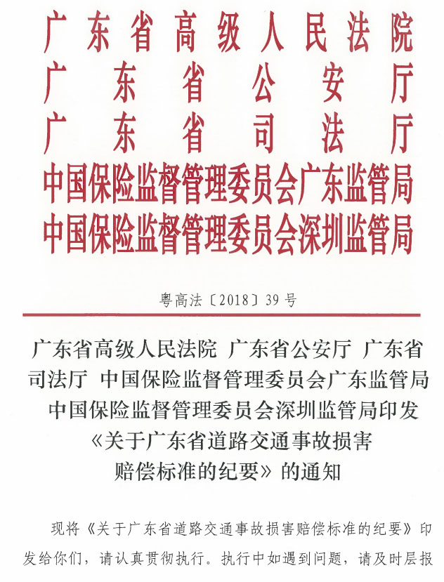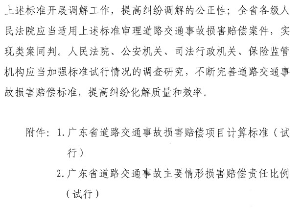 關(guān)于廣東省道路交通事故損害標(biāo)準(zhǔn)的紀(jì)要