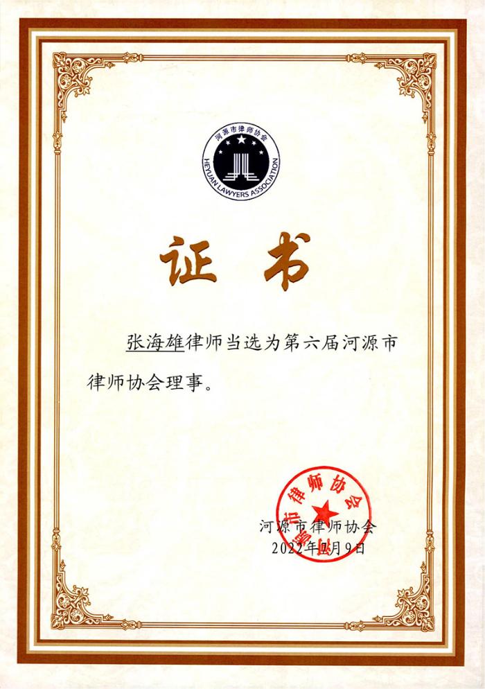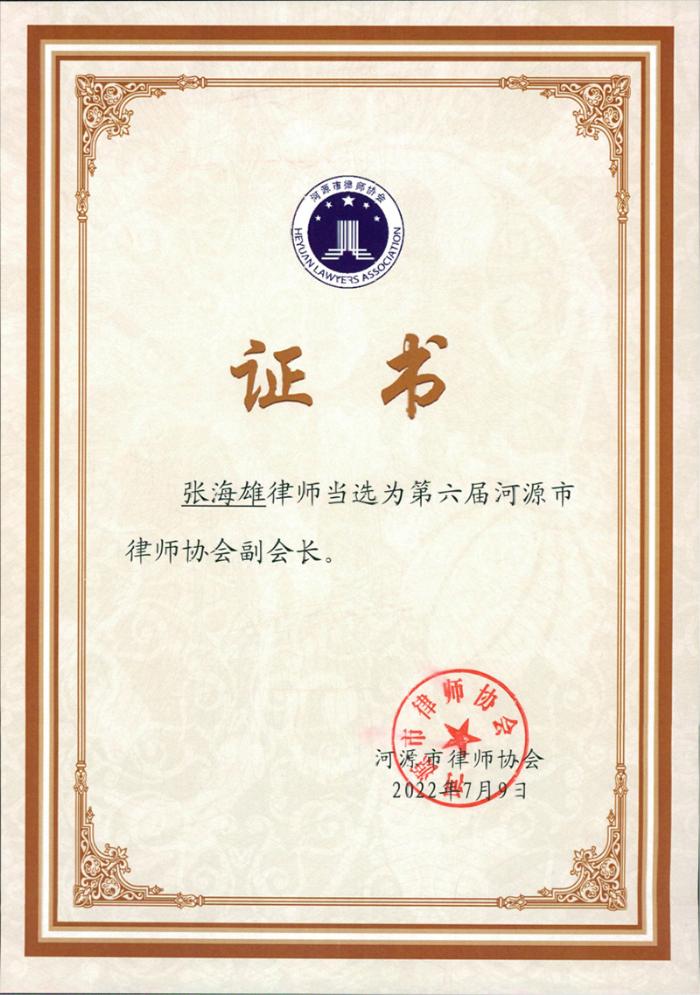 張海雄律師當(dāng)選河源市第六屆律師協(xié)會理事、副會長