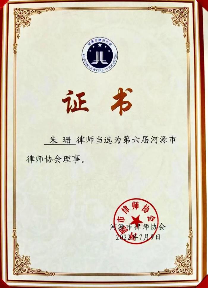朱珊律師當(dāng)選河源市第六屆律師協(xié)會理事