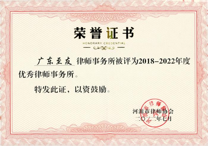廣東至友律師事務(wù)所被評為“2018-2022年度全市優(yōu)秀律師事務(wù)所”