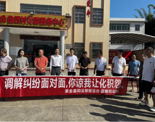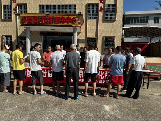 2024年9月30日上午,紫金縣司法局普法辦、藍(lán)塘司法所在藍(lán)塘鎮(zhèn)自然村開展“人民調(diào)解普法宣傳和法律咨詢”普法工作,廣東至友律師事務(wù)所賴偉兵受邀共同參與該活動。