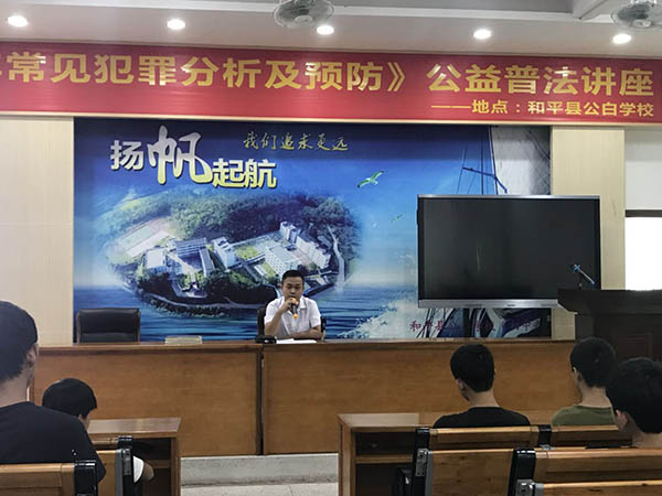 2018年6月15日下午,河源市“千名律師千場(chǎng)青少年法律服務(wù)”活動(dòng)公益服務(wù)團(tuán)律師成員——廣東至友律師事務(wù)所曾永祺律師在和平縣公白學(xué)校開(kāi)展了以“預(yù)防青少年犯罪、提高法律意識(shí)”為主題的法制教育講座。講座主要通過(guò)講述青少年群體常見(jiàn)犯罪的類(lèi)型、違法與犯罪的界限使學(xué)生們對(duì)違法犯罪有更深刻的認(rèn)識(shí),并著重解讀了關(guān)于毒品犯罪的相關(guān)法律知識(shí)。全校師生將近300人次參加了此次講座。