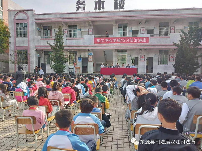 今年的12月4日是全國(guó)第五個(gè)國(guó)家憲法日,為了加強(qiáng)青少年的法治教育,引導(dǎo)、保障和促進(jìn)青少年的健康成長(zhǎng),減少和預(yù)防青少年犯罪,做到防微杜漸,警鐘長(zhǎng)鳴。2018年12月4日,雙江司法所聯(lián)合鎮(zhèn)綜治辦、派出所及廣東至友律師事務(wù)所的駐村律師舉辦了以“尊崇憲法、學(xué)習(xí)憲法、遵守憲法、維護(hù)憲法、運(yùn)用憲法”為主題的雙江中心學(xué)校法治講座暨12.4憲法日宣傳活動(dòng)進(jìn)校園活動(dòng)。師生反應(yīng)熱烈,此次講座師生300余人參加。鎮(zhèn)委副書記黃錦城參加了活動(dòng)。