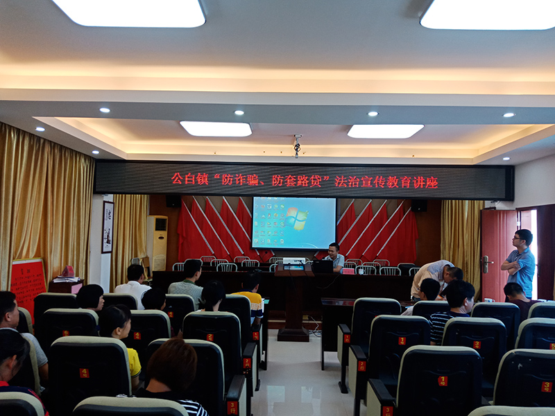 2019年5月16日,我所曾永祺律師在其村居服務(wù)所在地的和平縣公白鎮(zhèn)人民政府舉辦了一場以“防詐騙、防套路貸法治宣傳教育講座”為題的法治講座,在鎮(zhèn)政府會議廳舉行。